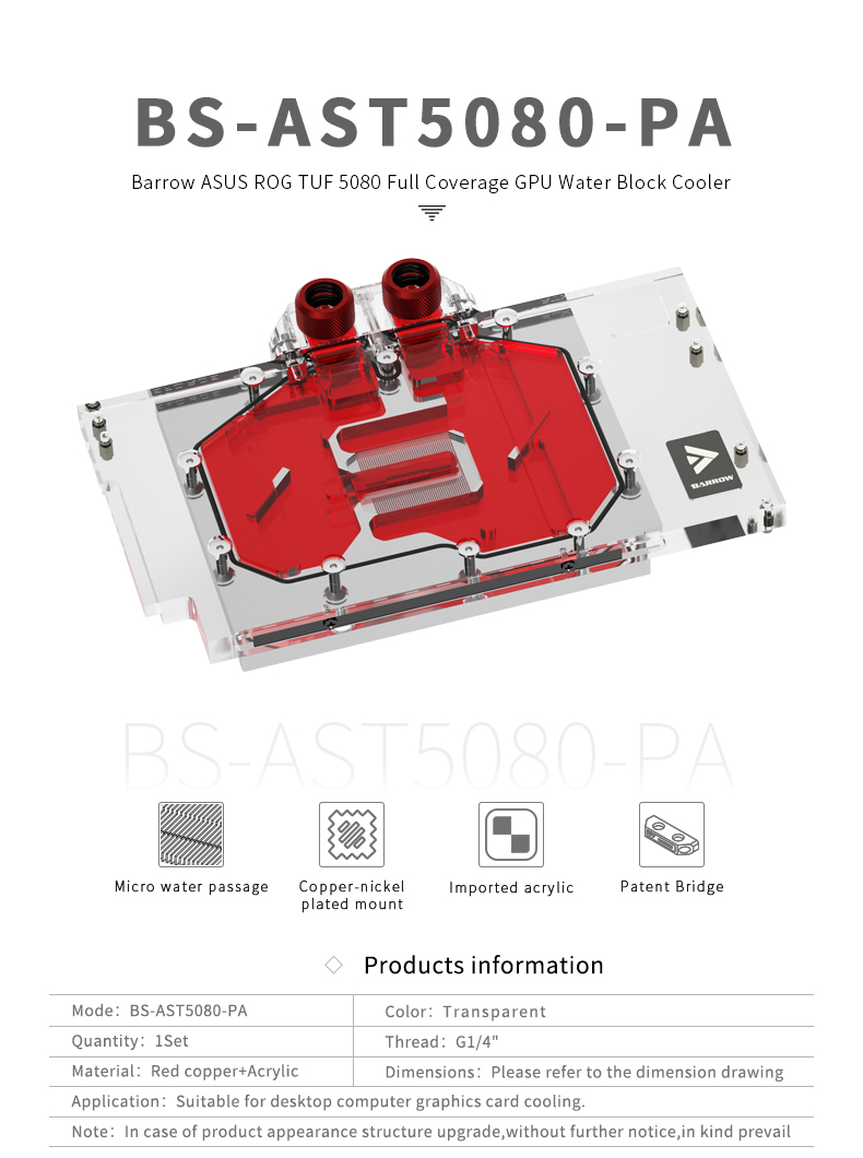 Barrow Full Cover RGB GPU Block for ASUS ROG TUF 5080 BS-AST5080-PA
