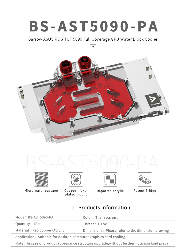 Barrow Full Cover RGB GPU Block for ASUS ROG TUF 5090 BS-AST5090-PA