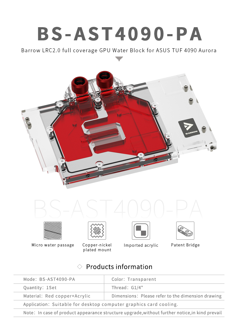 Barrow Full Cover Water Cooling GPU Block for ASUS TUF 4090 BS-AST4090-PA