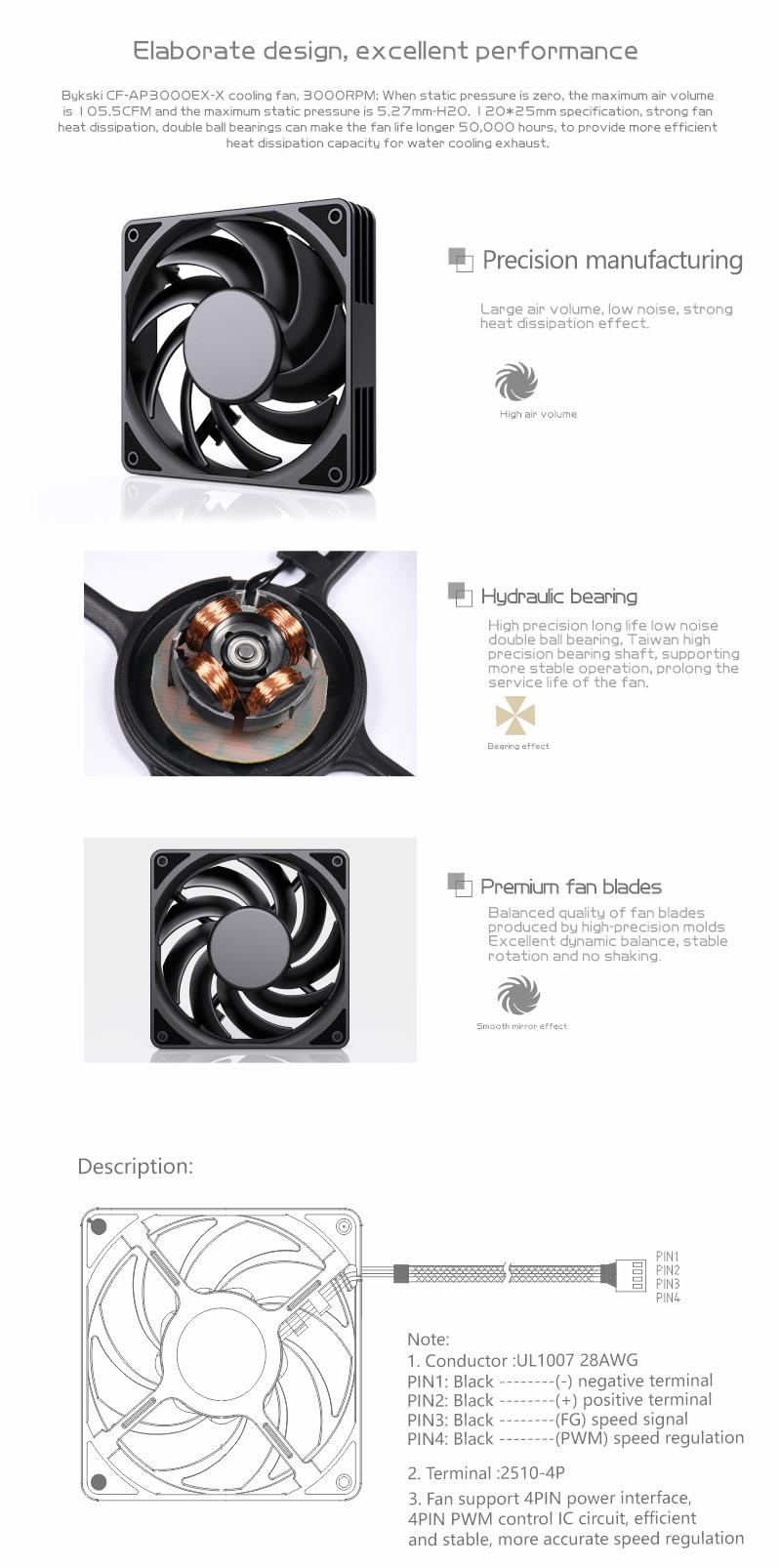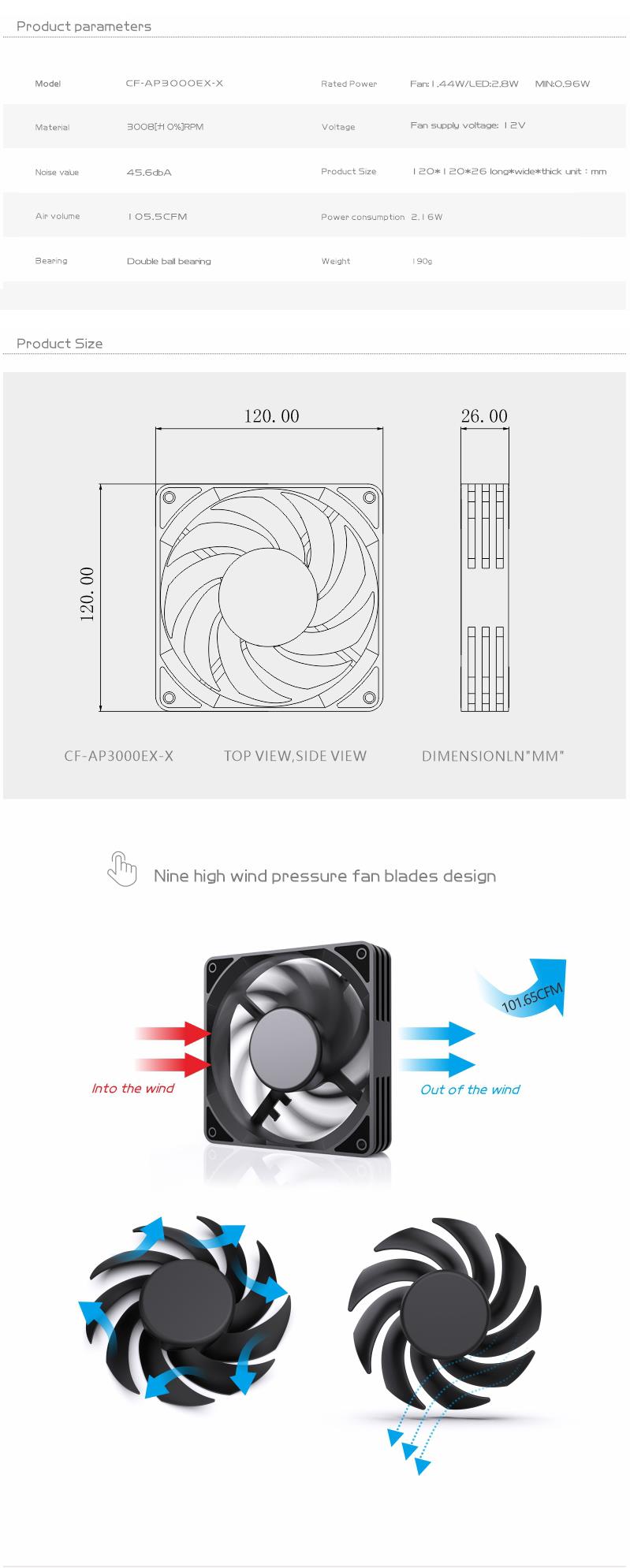 Bykski 120mm 12cm High Flow Fan 12v Dual Ball Bearing CF-AP3000EX-X