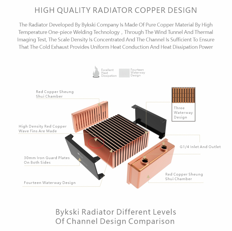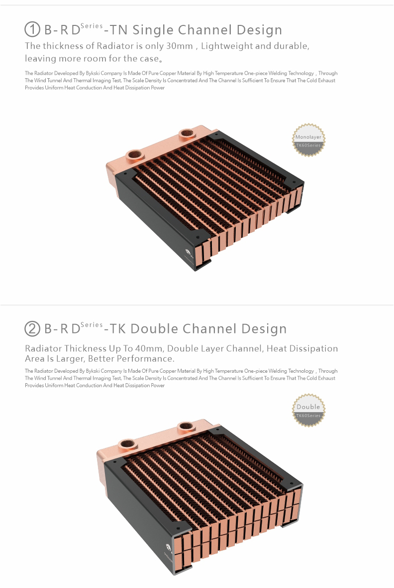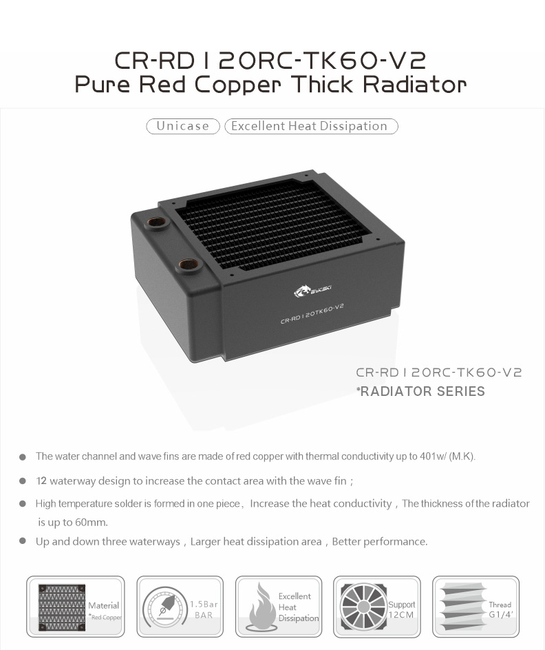 Bykski 120mm Water Cooling Triple Rows 60mm Copper Radiator CR-RD120RC-TK60-V2