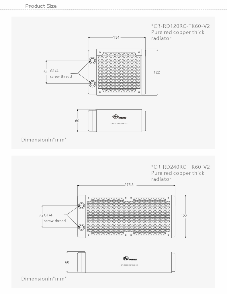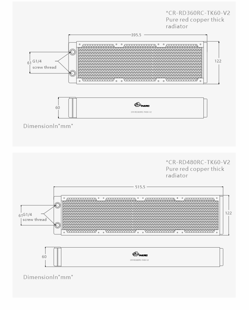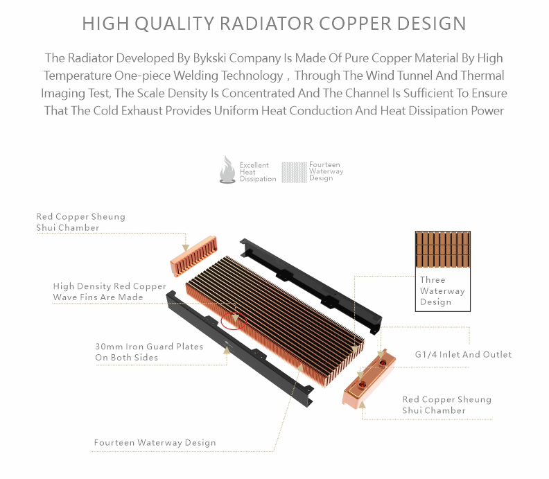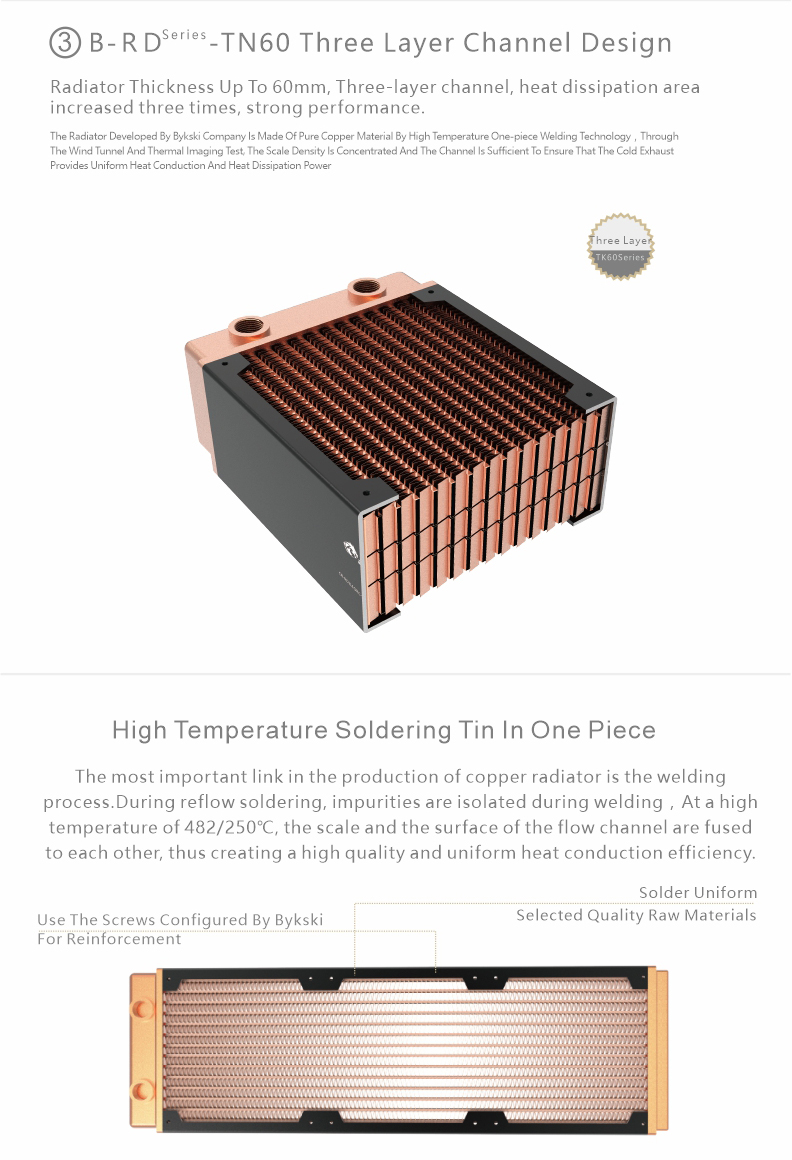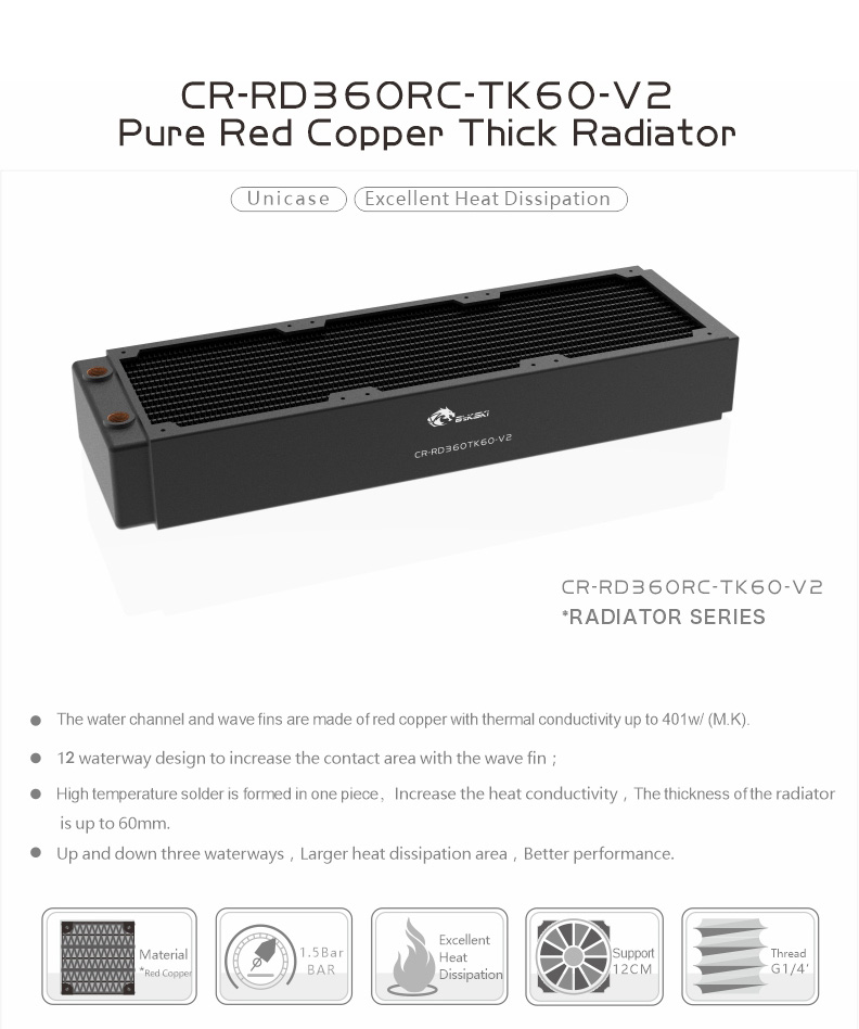 Bykski 360mm 60mm Thick Three Rows Copper Radiator CR-RD360RC-TK60-V2
