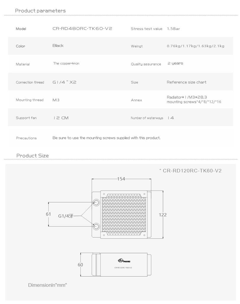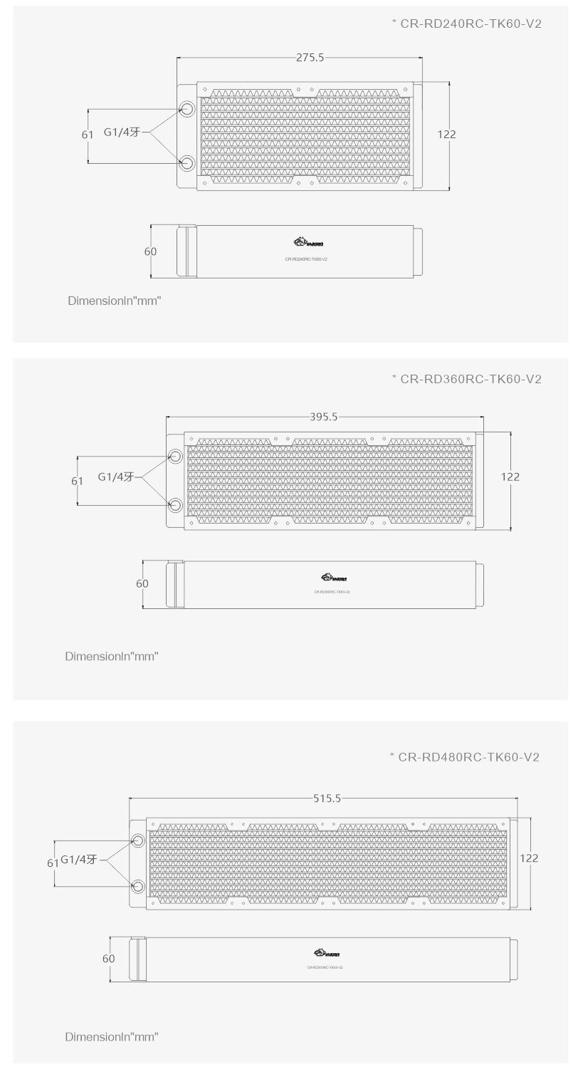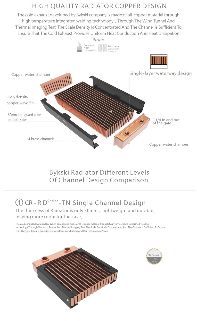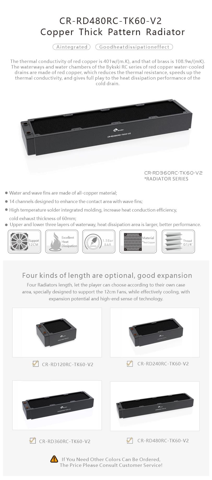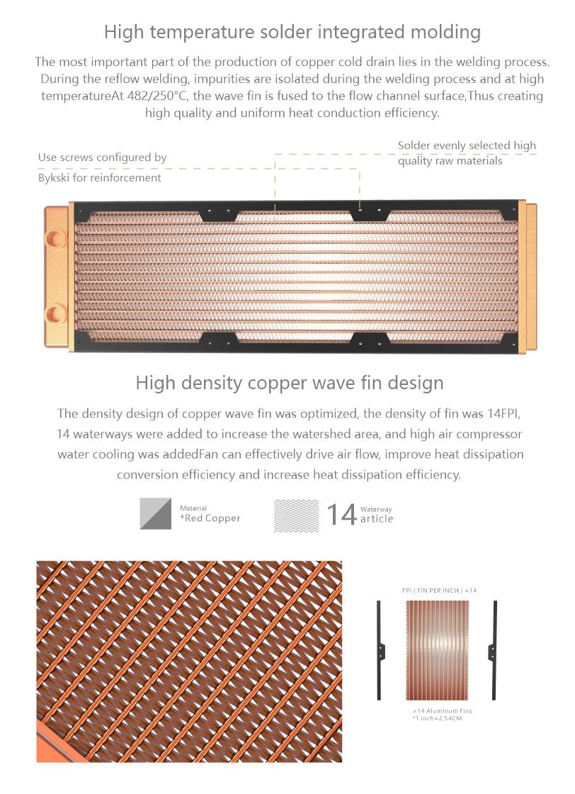 Bykski 480mm 60mm Thick Three Rows Copper Radiator CR-RD480RC-TK60-V2