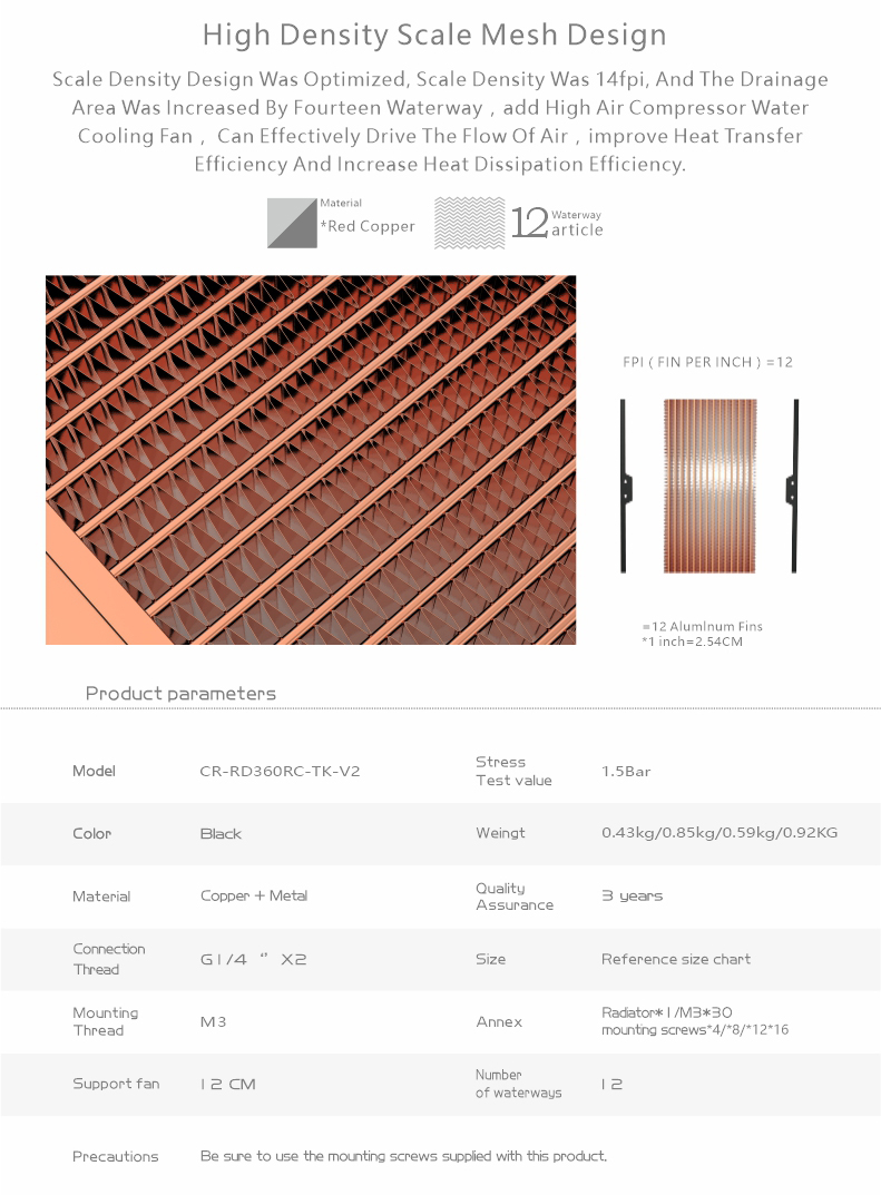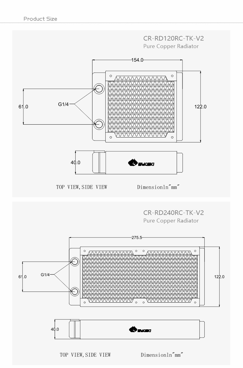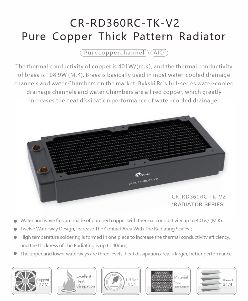 Bykski 360mm Double Row Copper Radiator CR-RD360RC-Tk-V2