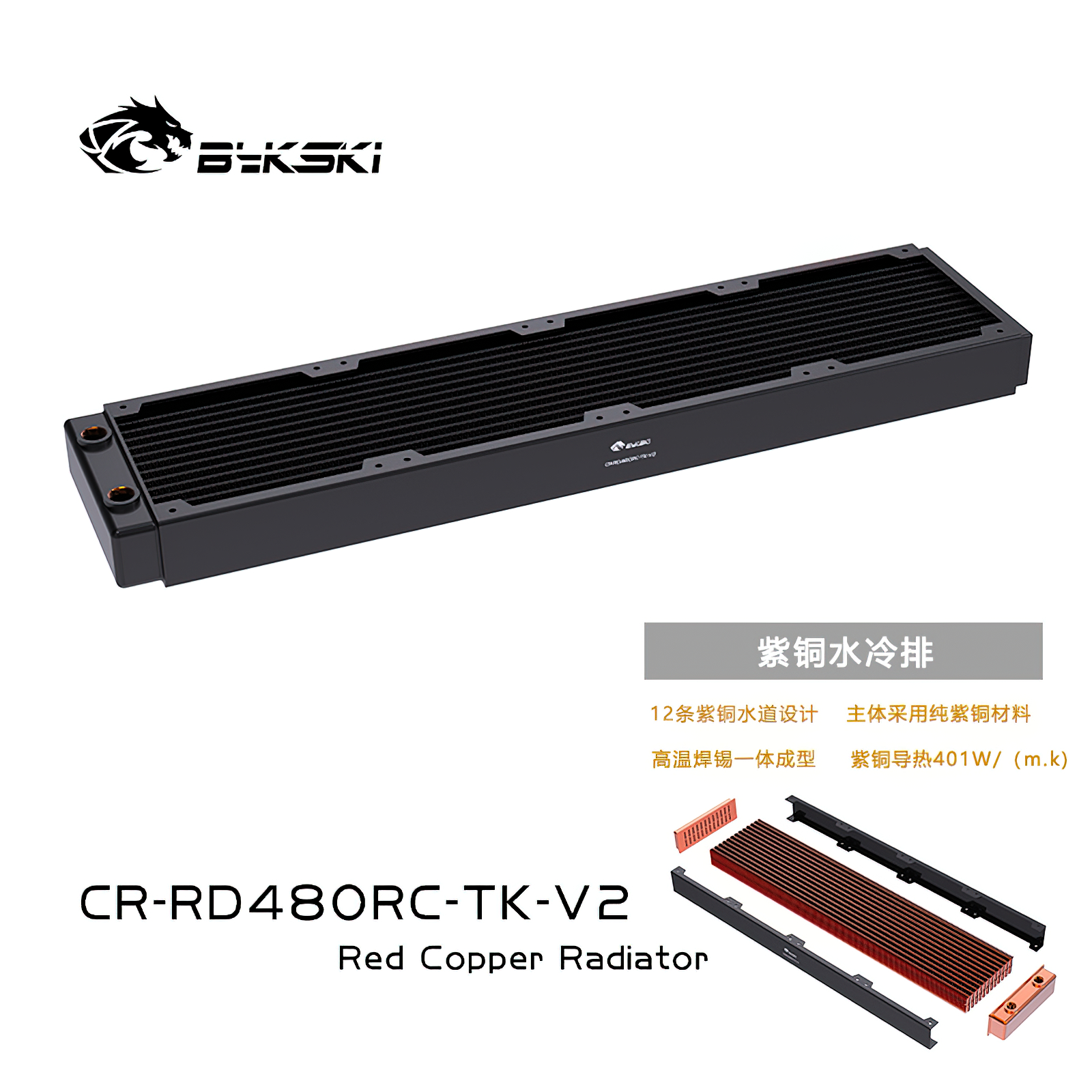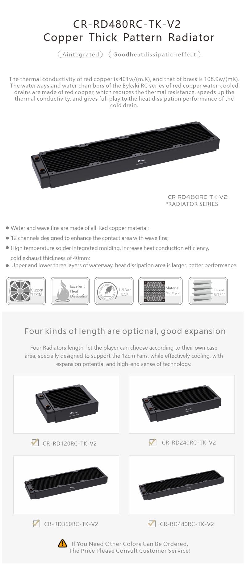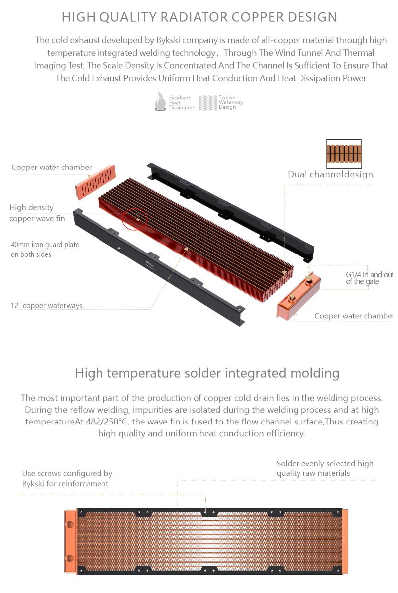 Bykski 480mm 40mm Height Double Row Copper Radiator CR-RD480RC-Tk-V2