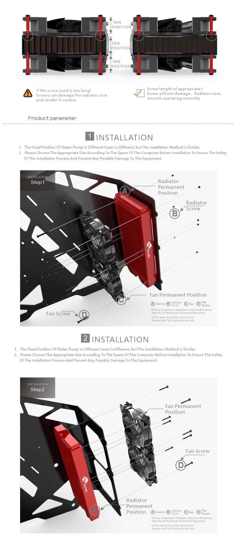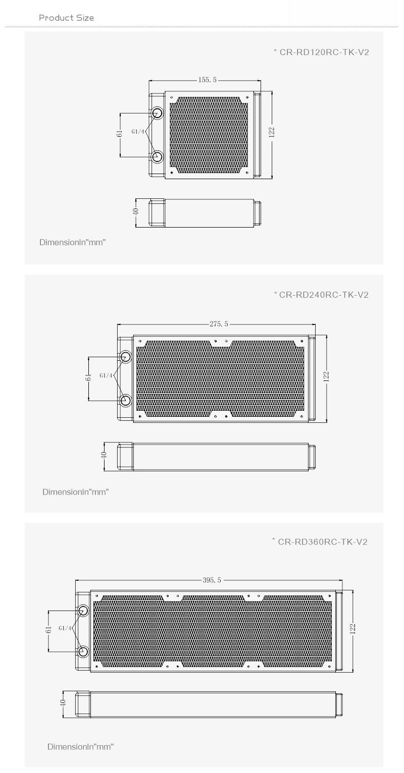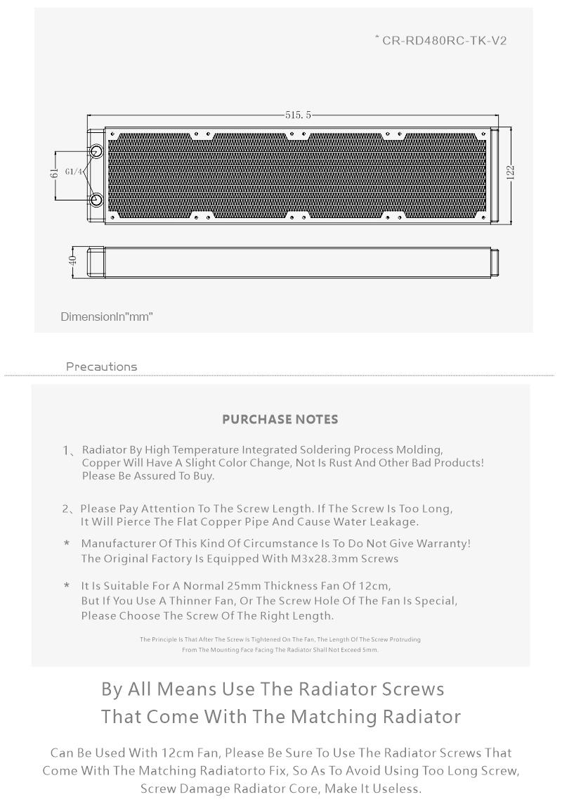Bykski 480mm 40mm Height Double Row Copper Radiator CR-RD480RC-Tk-V2