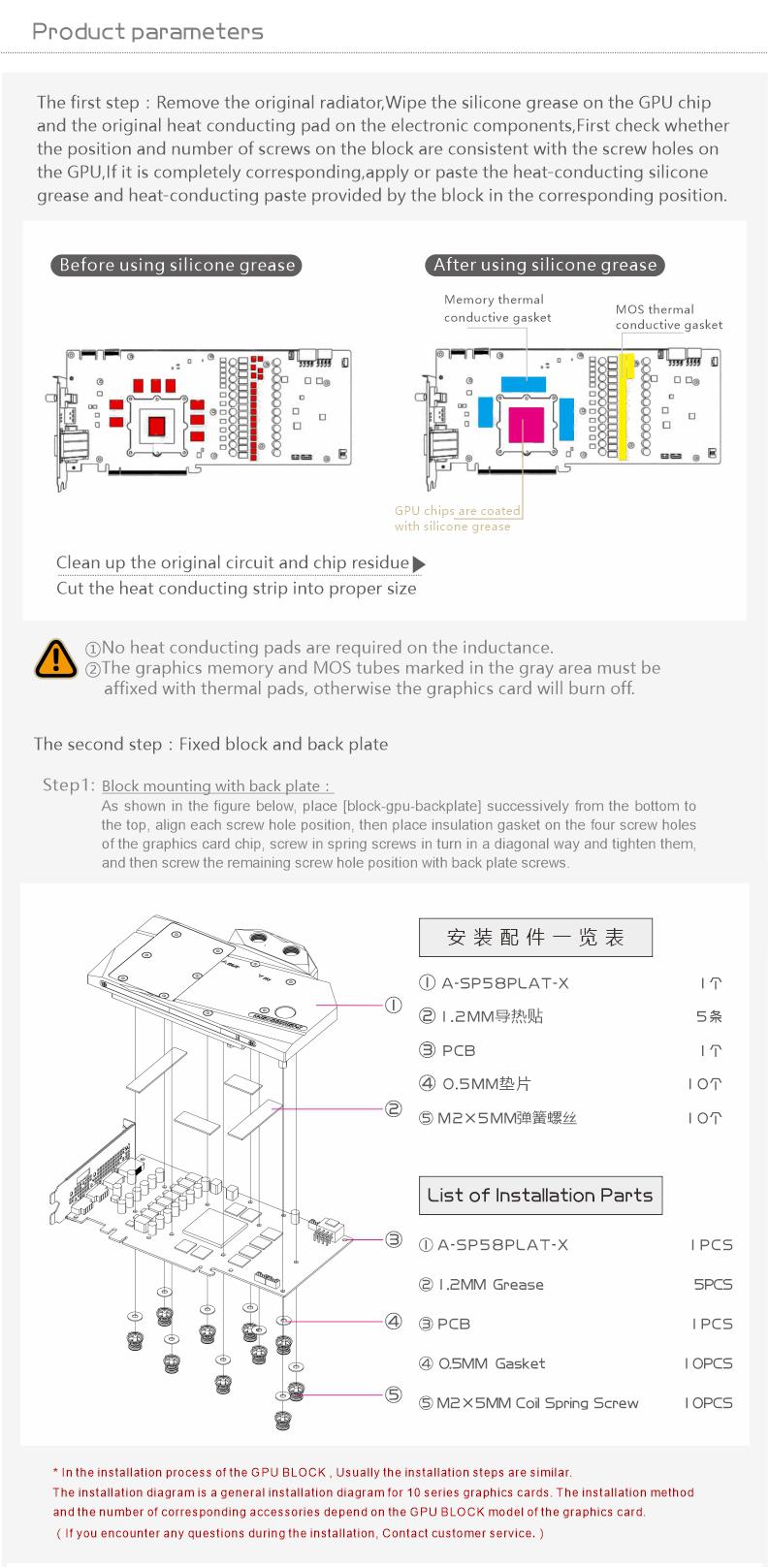 Please judge whether the block can be applied to your graphics card according to the PCB, the position of the Core/VRAM/Capacitor/Inductor/Screw hole must be 100% compliant, the number of VRAM/Capacitor/Inductors may vary slightly depending on the card model.