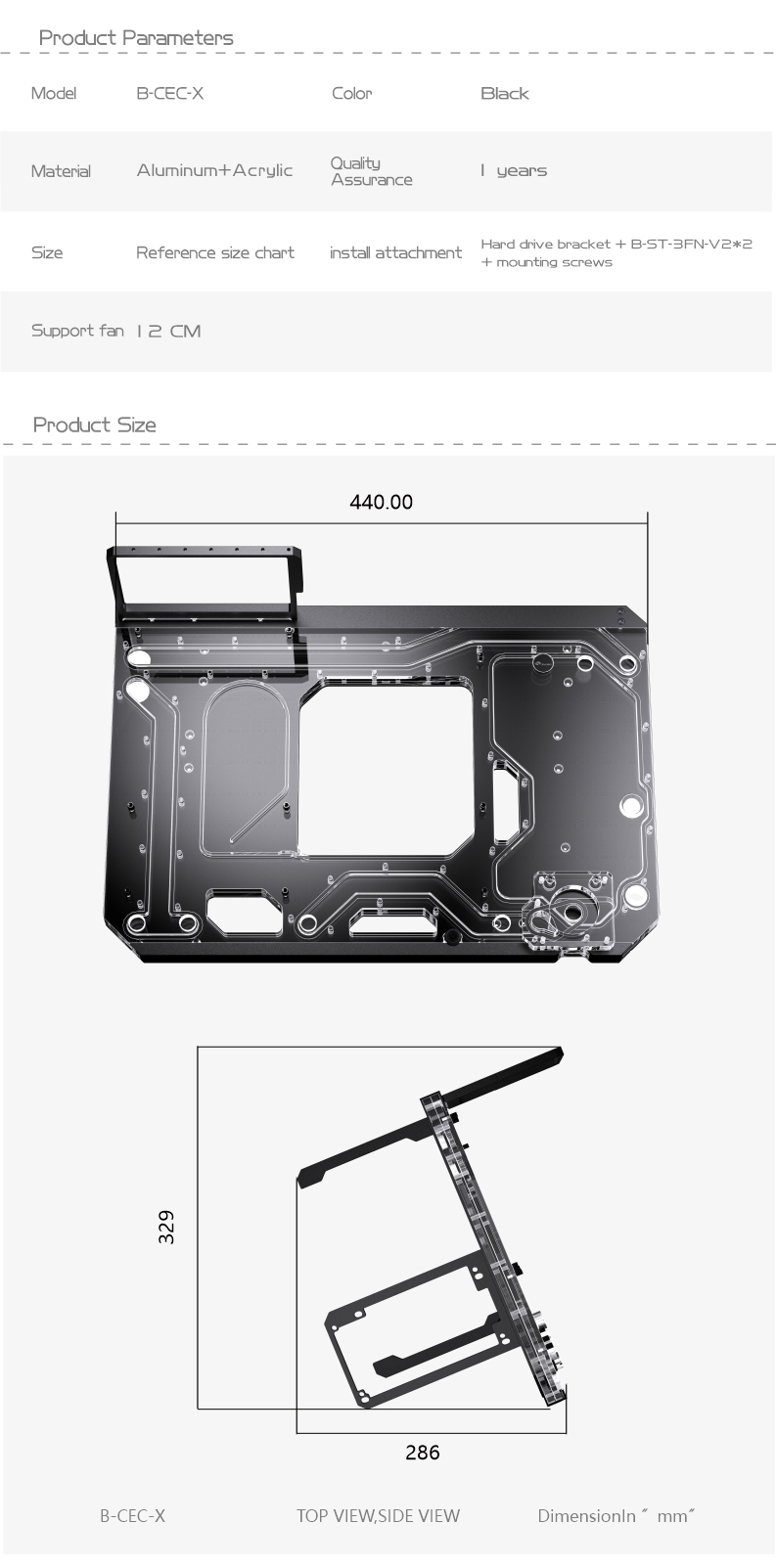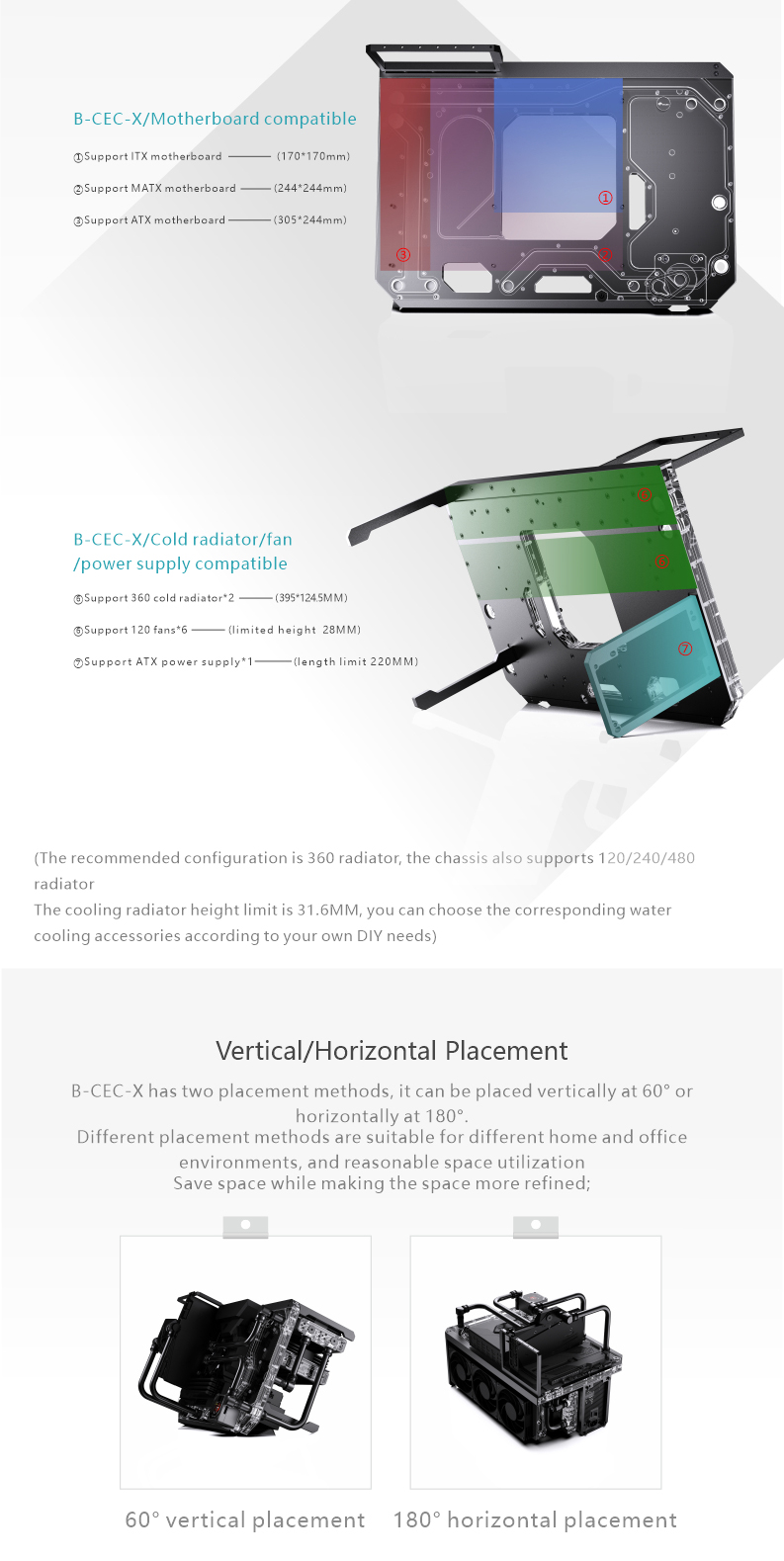 Support ITX (170*170mm), Support MATX (244*244mm), Support ATX (305*244mm), Support E-ATX (305*280mm)