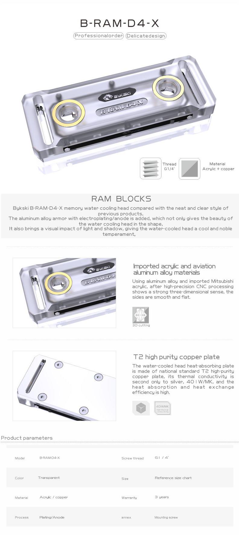 Bykski RGB DIMM RAM Liquid Cooling Block B-RAM-D4-X