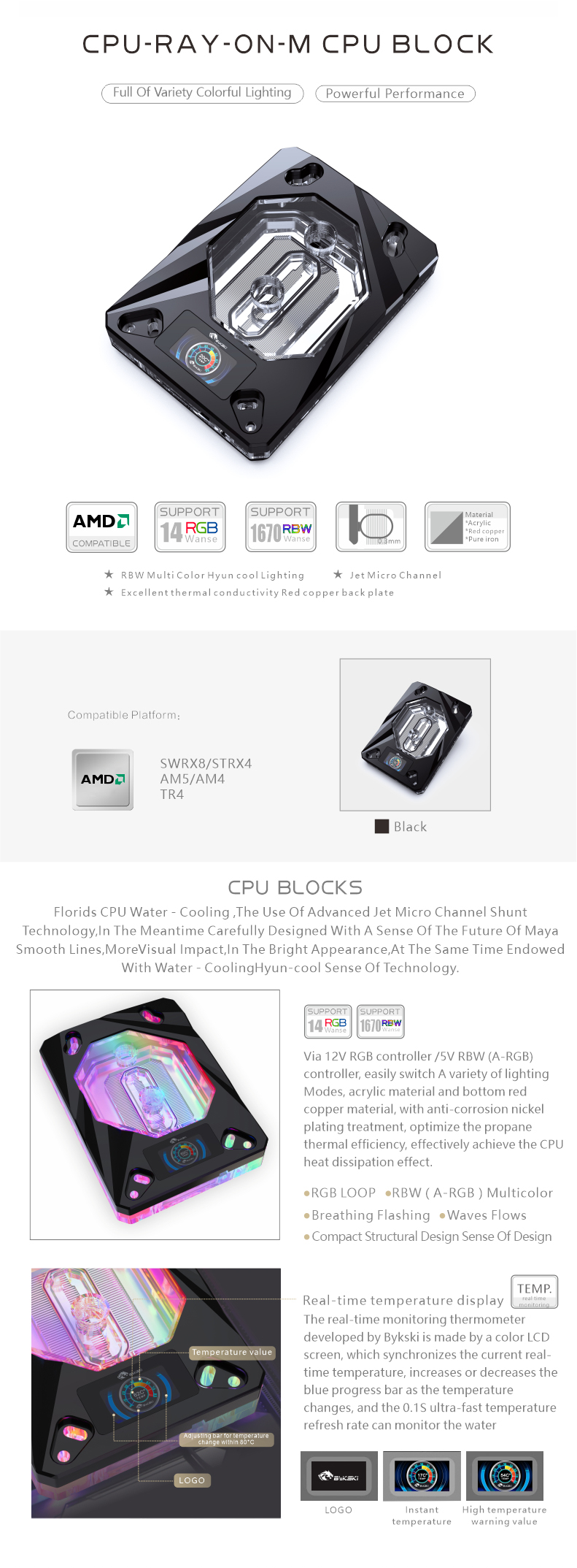 Bykski CPU Block for AMD AM3 AM4 AM5 Digital Thermometer CPU-RAY-ON-M
