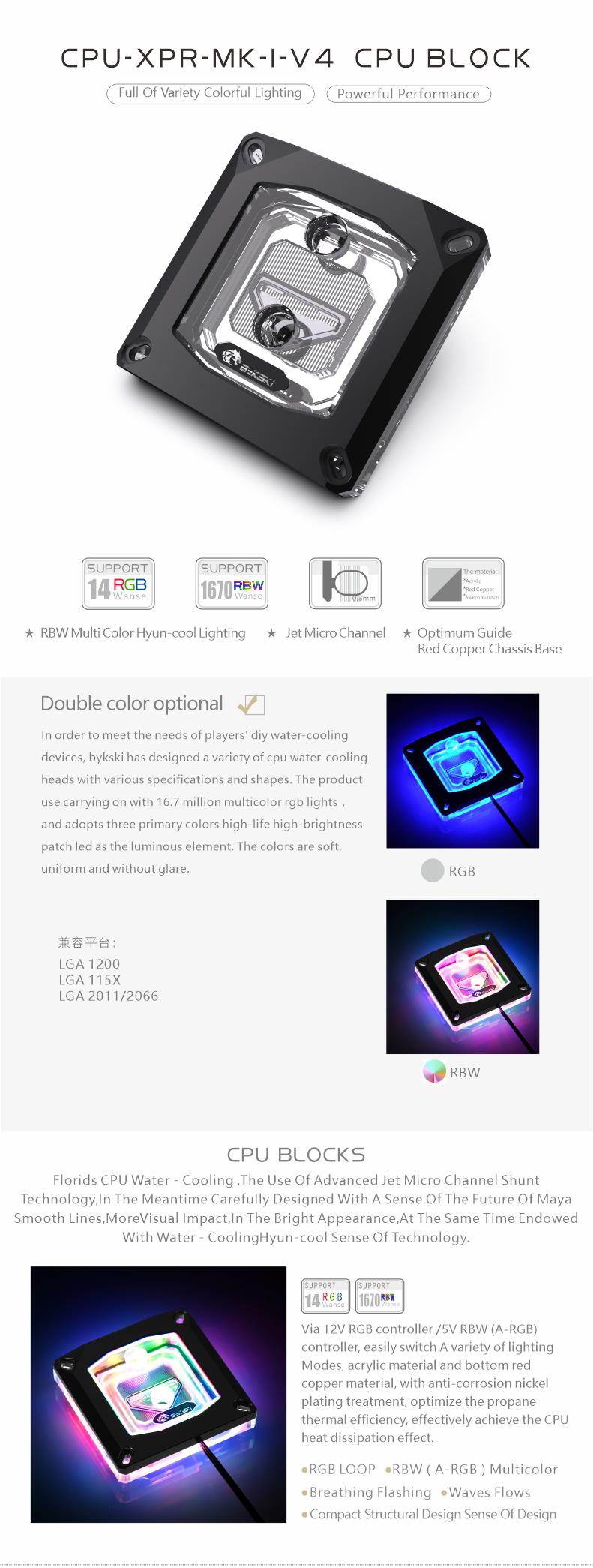 Bykski CPU Liquid Cooling Block for Intel 115x 1200 1700 20xx CPU-XPR-MK-I-V4