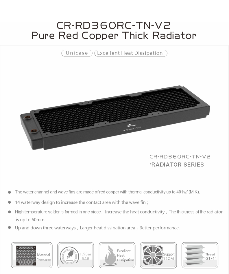 Bykski CR-RD360RC-Tn-V2 360mm High Performance Copper Radiator Heat Exchanger
