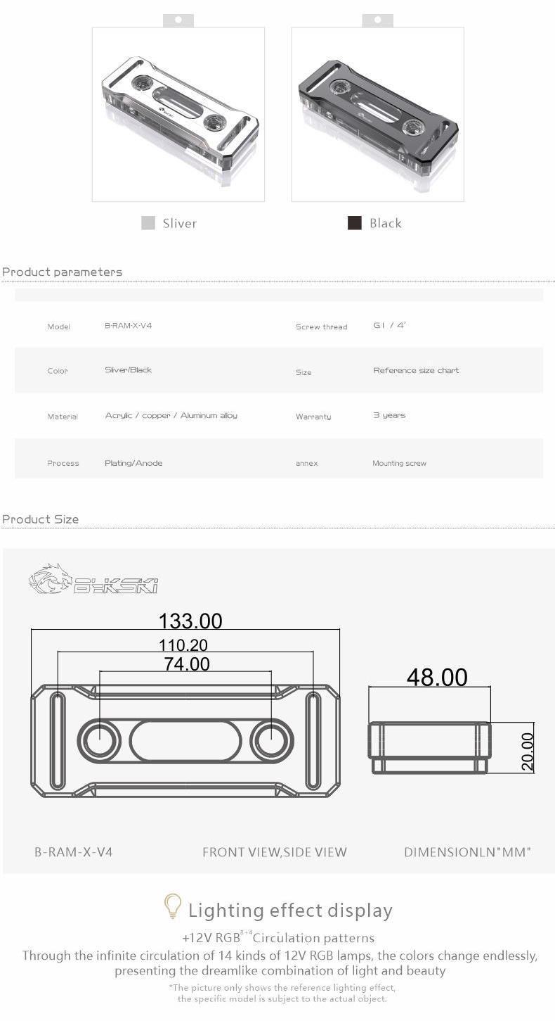 Bykski DIMM DRAM Water Cooling Cooling Block B-RAM-X-V4