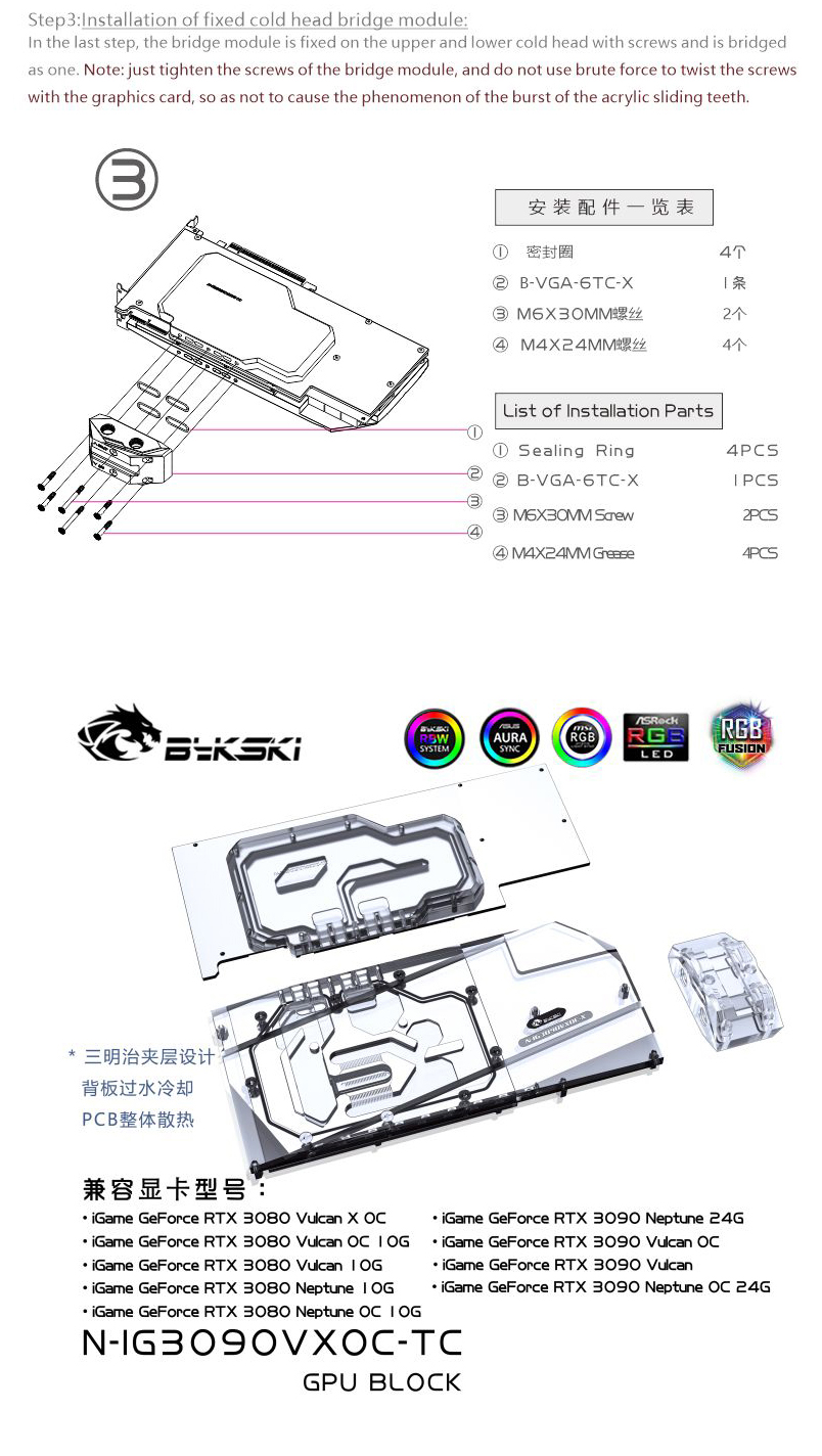 Compatible List (Including but not limited to the following models)Colorful iGame RTX 3080 Vulcan X OCColorful iGame RTX 3080 Vulcan OC 10GColorful iGame RTX 3080 Vulcan 10GColorful iGame RTX 3080 Neptune OC 10GColorful iGame RTX 3080 Neptune 10G