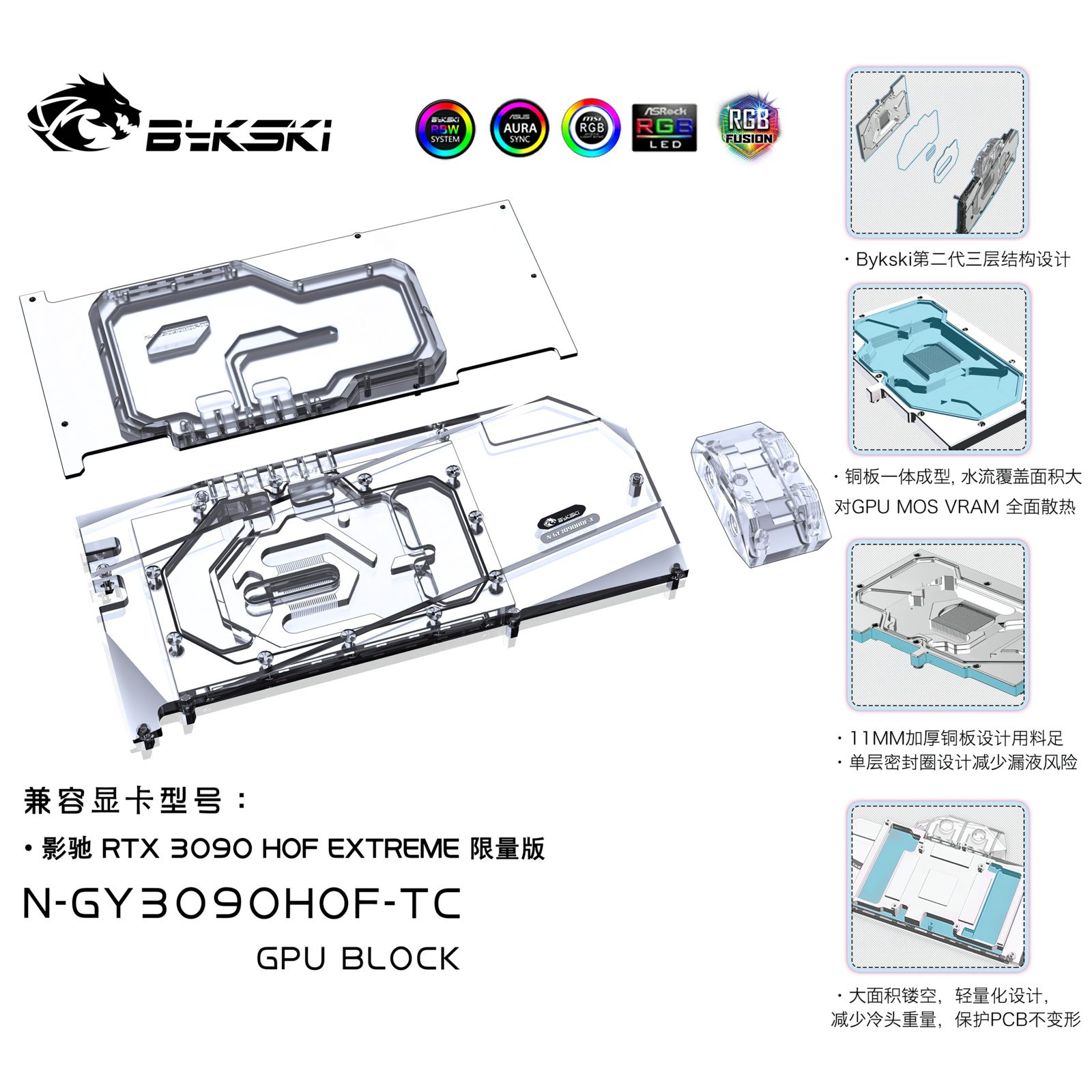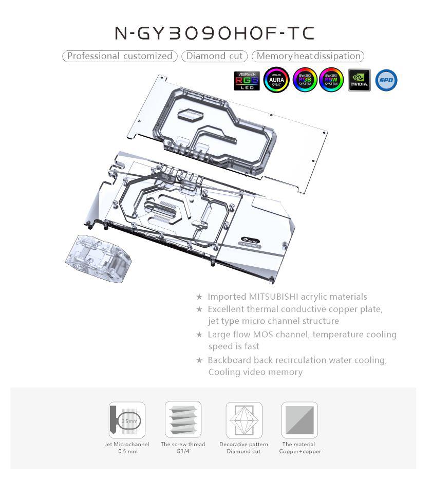 2021 New design for high power gpu, Both sides of the water cooling, cooling more efficient, suitable for high-power GPU, lower temperature, more stable, more ETH.Compatible list , including but not limited to the following models, PCB is used as the basis to judge whether it is compatible. If you have any questions, please contact me before purchasing. Galax RTX 3090 HOF Extreme
