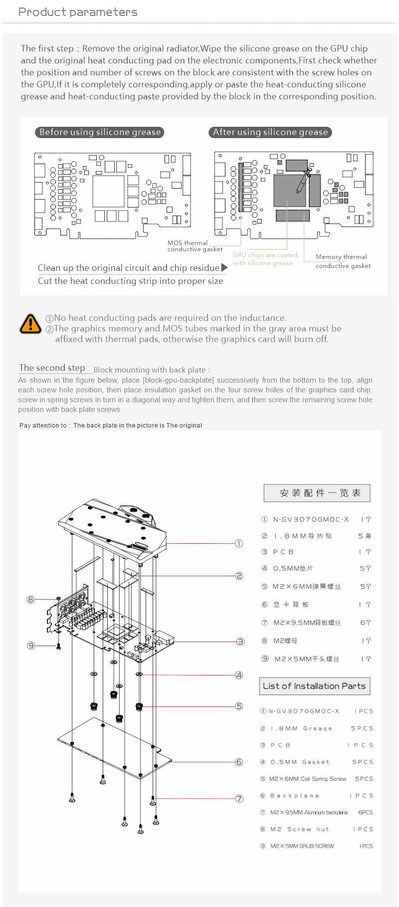 Compatible List (Including but not limited to the following models)GIGA RTX 3070 Gaming OC 8GGIGA RTX 3070 EAGLE OC 8GGIGA RTX 3070 VISION OC 8GThe following are some compatible graphics cards and PCB photos, for reference only, if you can not determine the compatibility, please consult us before purchase