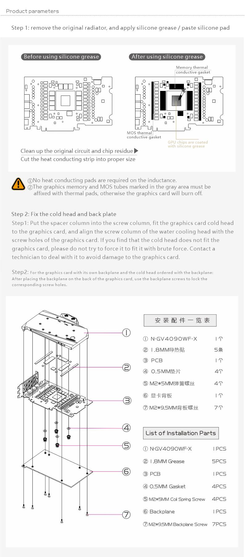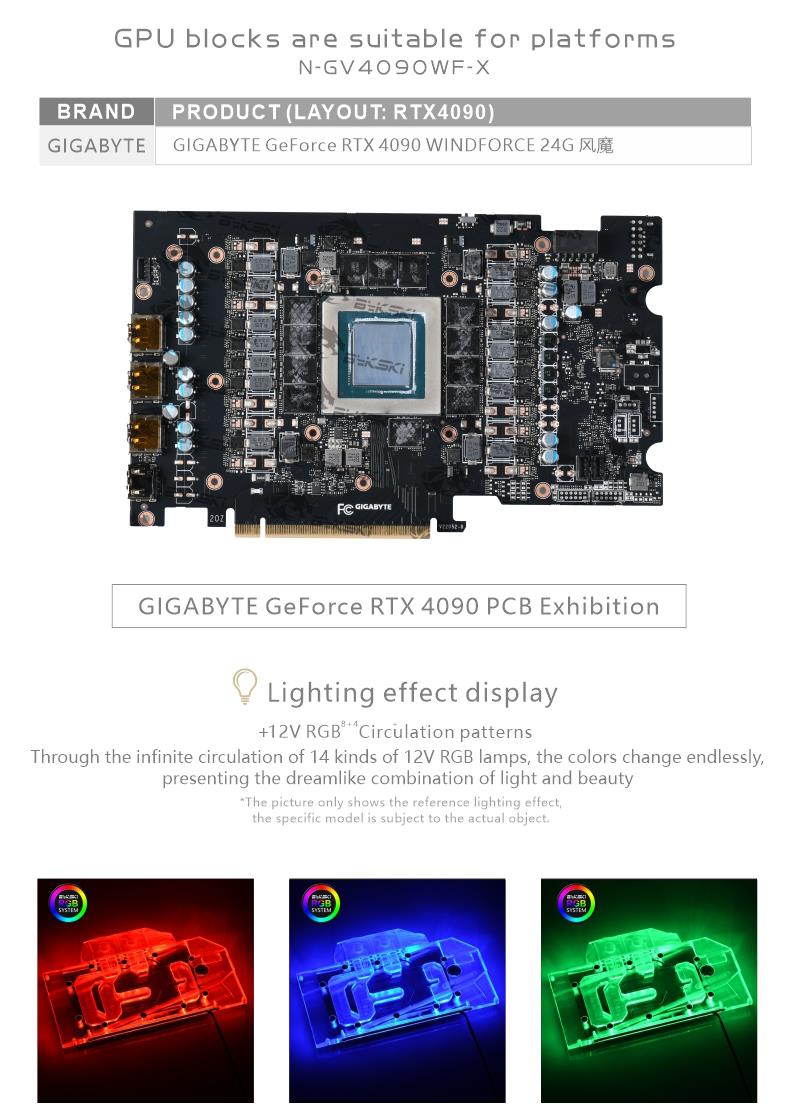 Compatible List (Including but not limited to the following models)GigaByte RTX4090 WindForce 24GThe following are some compatible graphics cards and PCB photos, for reference only, if you can not determine the compatibility, please consult us before purchase.