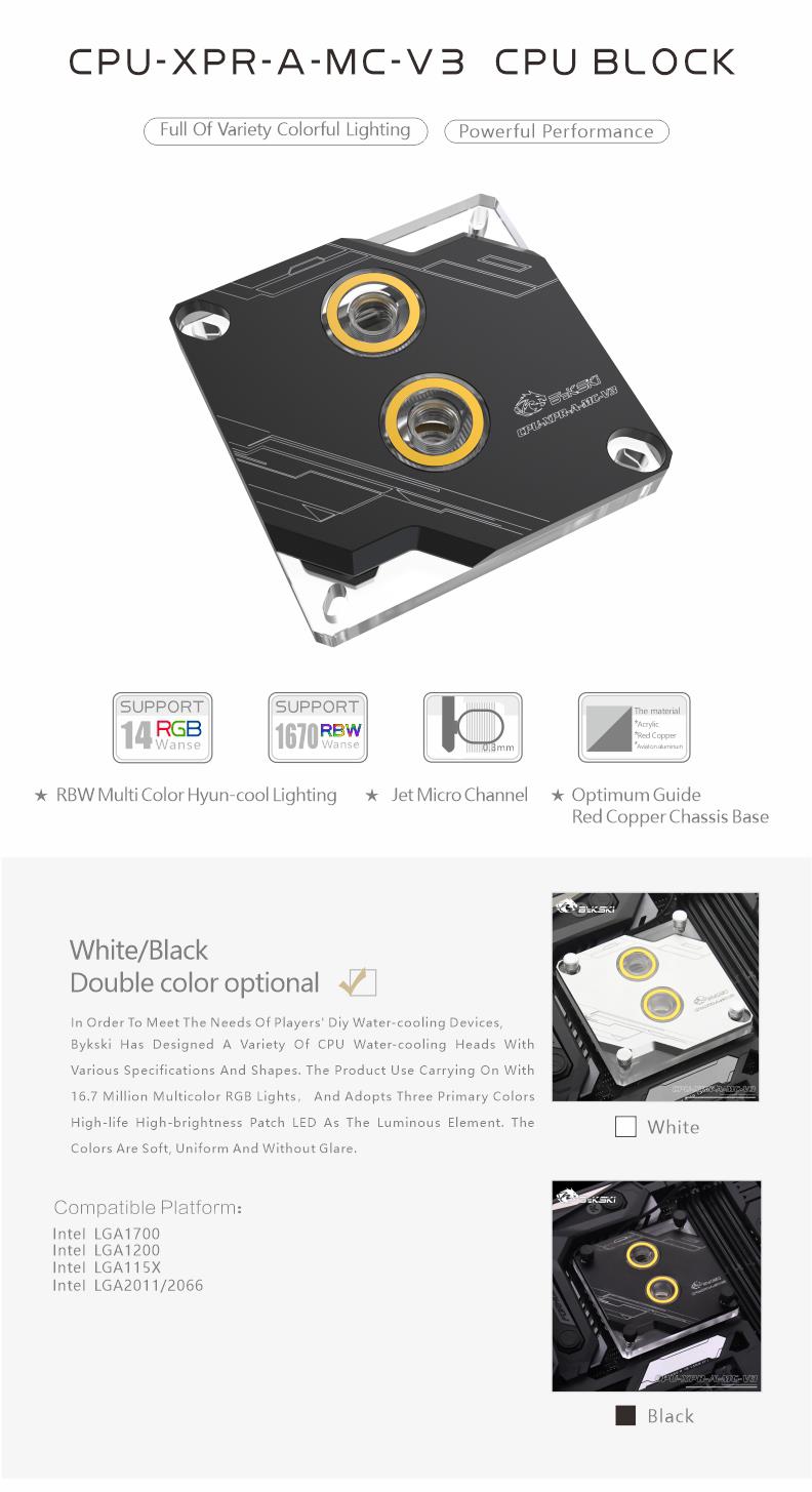 Bykski RGB CPU Block for Intel 115x 1200 1700 CPU-XPR-A-MC-V3