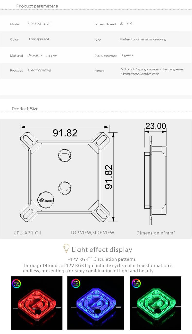 Bykski RGB CPU Liquid Cooling Block for Intel 115x 1200 1700 CPU-XPR-C-I