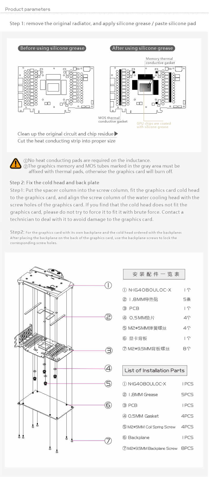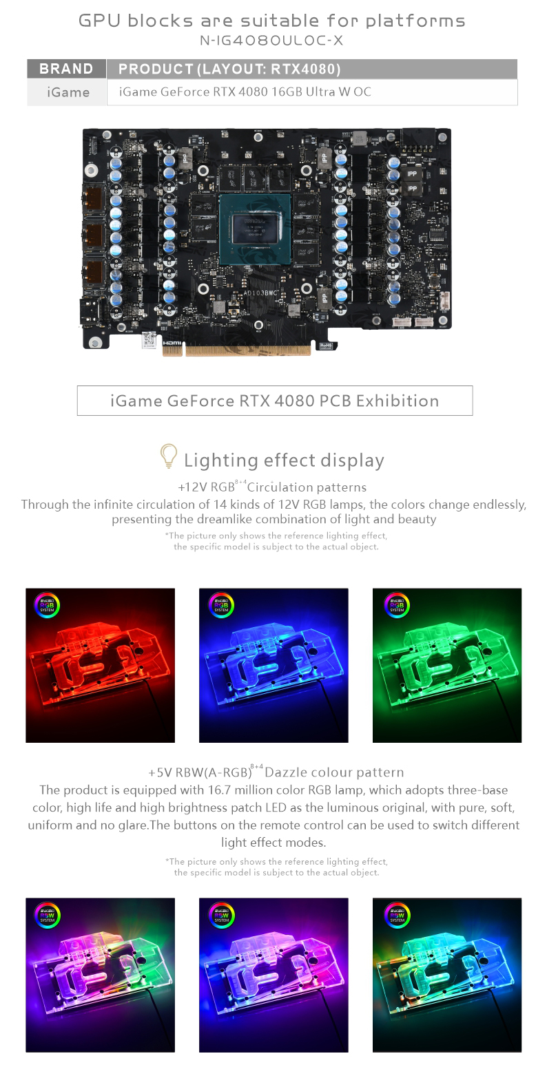 Please judge whether the block can be applied to your graphics card according to the PCB, the position of the Core/VRAM/Capacitor/Inductor/Screw hole must be 100% compliant, the number of VRAM/Capacitor/Inductors may vary slightly depending on the card model.