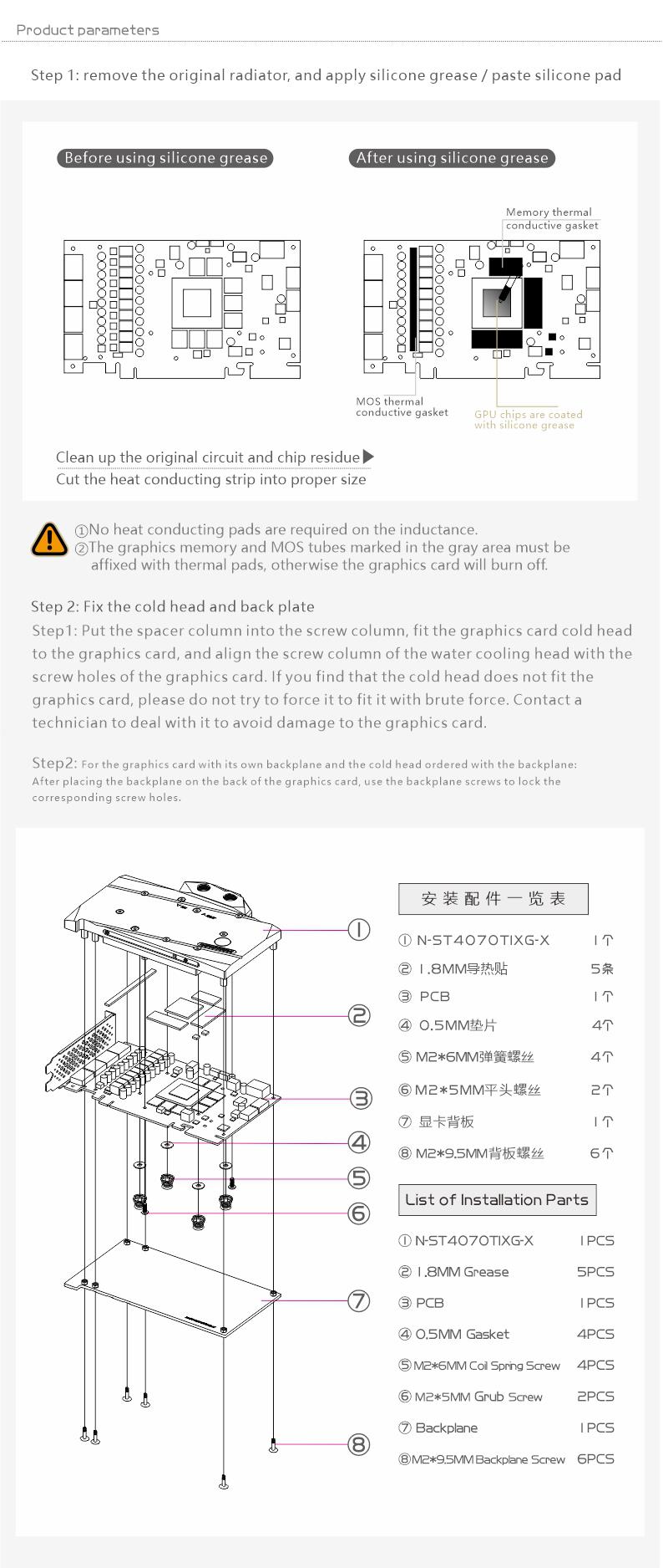 Please judge whether the block can be applied to your graphics card according to the PCB, the position of the Core/VRAM/Capacitor/Inductor/Screw hole must be 100% compliant, the number of VRAM/Capacitor/Inductors may vary slightly depending on the card model.